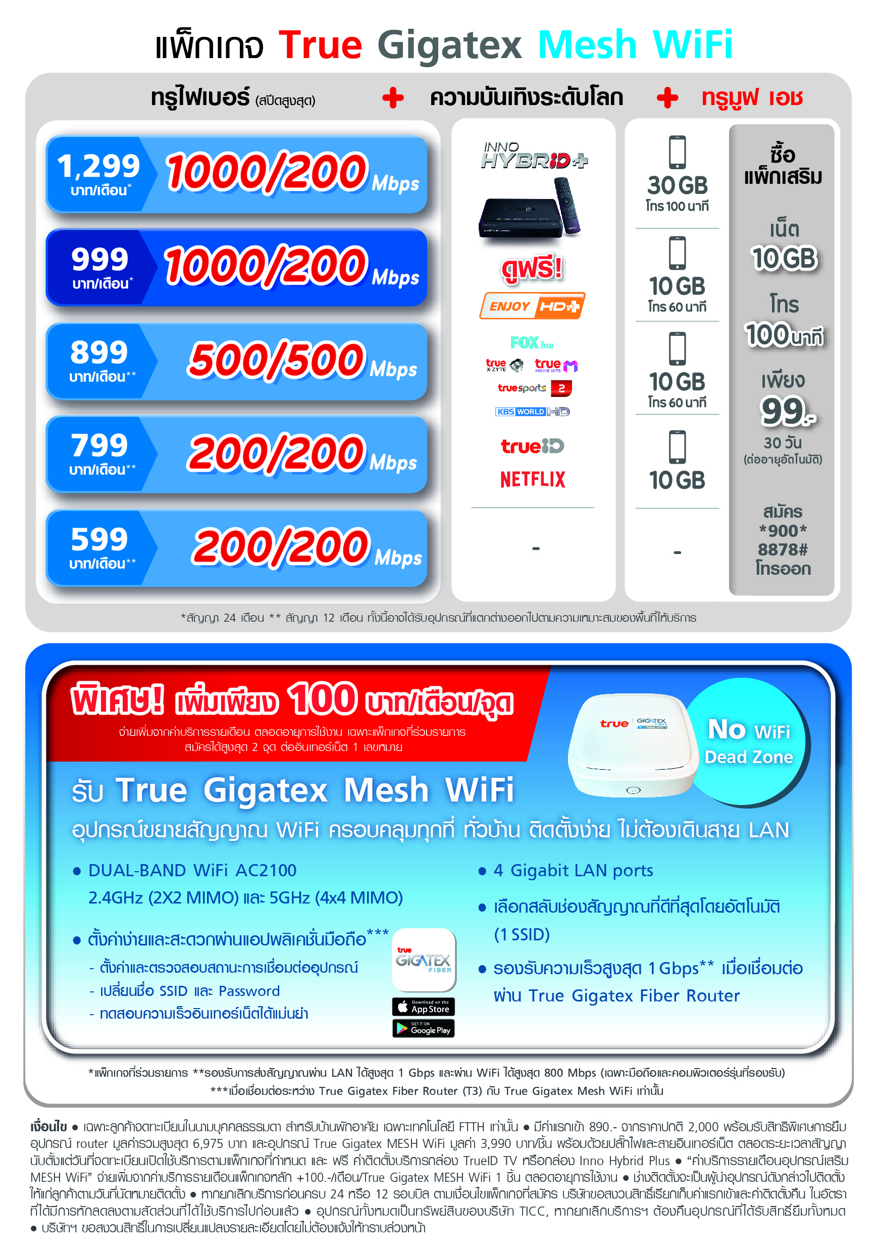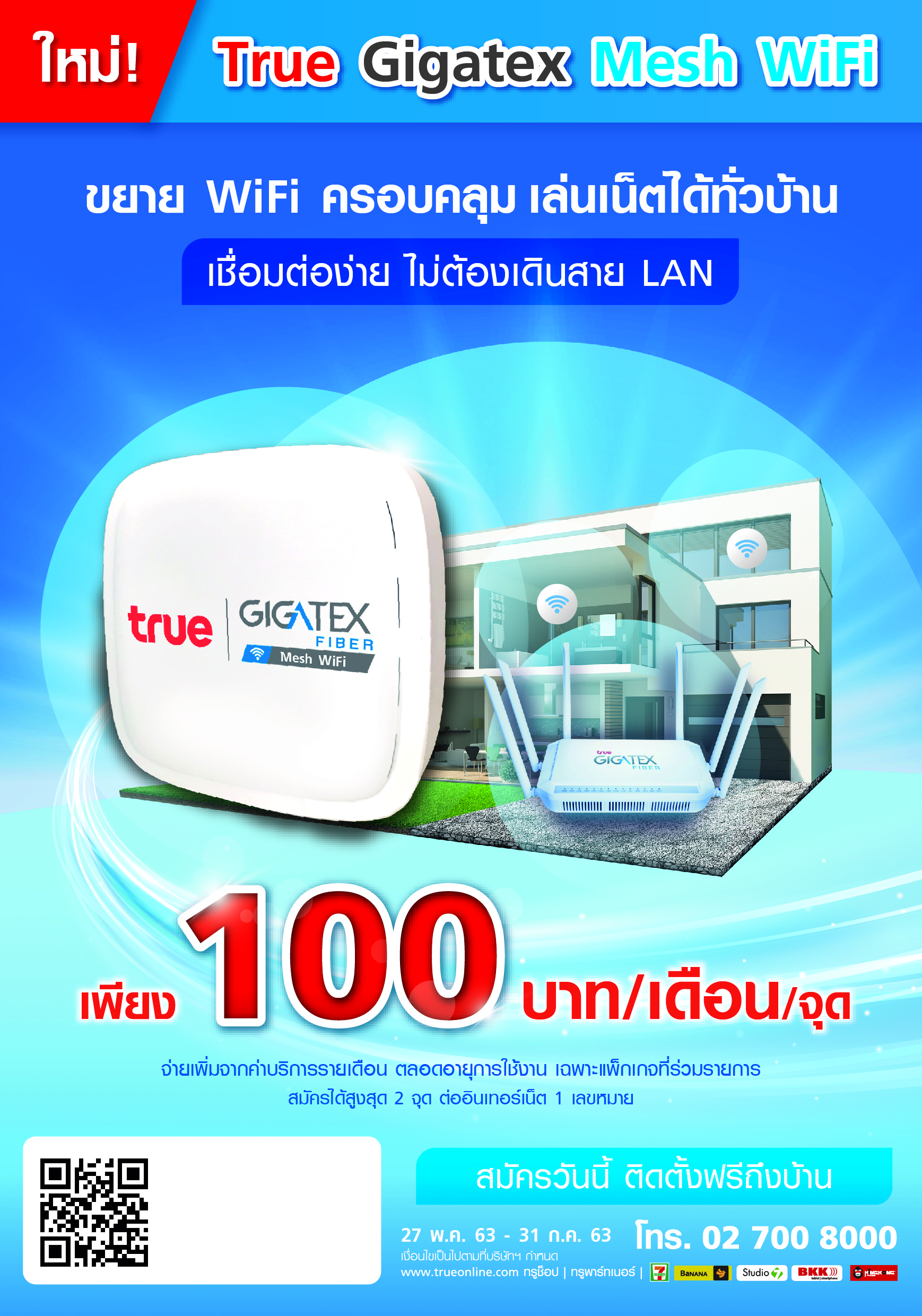 (จ่ายเพิ่มได้สูงสุด 200 บาท ต่อเดือน ต่อ 2 จุด) ราคายังไม่รวม VAT ก็ทำให้ใช้ Wi-Fi ได้ครอบคลุมทั่วทั้งบ้าน โดยมีเงื่อนไขคือ ขอแค่ใช้อินเทอร์เน็ต Fiber ของทรู แพ็กเกจใดก็ได้