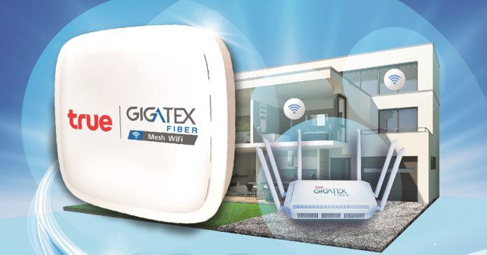 True Gigatex Mesh WiFi เป็นอุปกรณ์ขยายสัญญาณ Wi-Fi ให้แรงครอบคลุมทั่วทั้งบ้าน ทำให้เล่นเน็ตได้ทั้งบ้าน ครอบคลุมทุกตารางเมตร หมดปัญหาจุดอับสัญญาณ และมีข้อดีคือ เชื่อมต่อง่าย ด้วย Wi-Fi ชื่อเดียวกันทั้งบ้าน ติดตั้งง่าย ไม่ต้องเดินสาย LAN