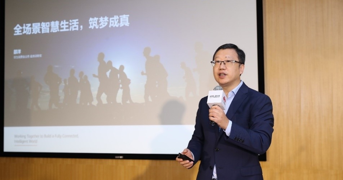 บรรยายภาพ: นายเส้า หยาง ประธานเจ้าหน้าที่ฝ่ายกลยุทธ์ของหัวเว่ย คอนซูมเมอร์ บิสสิเนส กรุ๊ป กล่าวระหว่างการประชุม Huawei Analyst Summit ณ เมืองเซินเจิ้น สาธารณรัฐประชาชนจีน