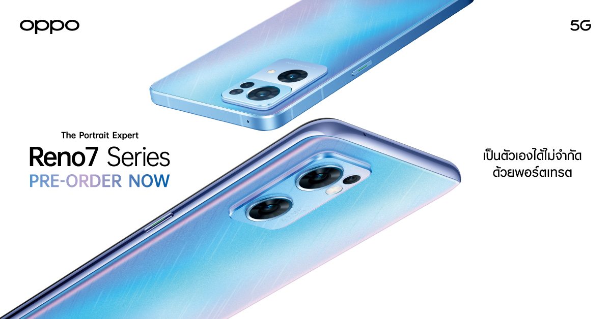 OPPO Reno7 Series 5G สมาร์ทโฟน 5G ที่ถ่ายวิดีโอพอร์ตเทรตได้ดีที่สุด ตอกย้ำความเป็น The Portrait Expert ตัวจริง วางจำหน่าย 2 รุ่น ได้แก่ OPPO Reno7 5G ราคา 16,990 บาท มีให้เลือก 2 สี ได้แก่ สีฟ้า Startrails Blue และสีดำ Starry Black ส่วน OPPO Reno7 Pro 5G ราคา 22,990 บาท มี ให้เลือก 2 สี ได้แก่ สีฟ้า Startrails Blue และสีดำ Starlight Black ผู้ที่สนใจสามารถจองได้แล้วตั้งแต่วันนี้ถึง 18 กุมภาพันธ์ พร้อมรับโปรโมชั่นและเซ็ตของพรีเมี่ยม สำหรับผู้ที่จอง OPPO Reno7 5G รับฟรี OPPO Enco Buds และ E-VIP Card ประกันหน้าจอแตก มูลค่ารวม 6,999 บาท และสำหรับผู้ที่จอง OPPO Reno7 Pro 5G รับฟรี OPPO Enco Air2 รุ่นใหม่ล่าสุดที่จะเปิดตัวเร็วๆ นี้ และ E-VIP Card ประกันหน้าจอแตก มูลค่ารวม 10,499 บาท และพิเศษเมื่อจองผ่านผู้ให้บริการเครือข่าย ราคาเริ่มต้นเพียง 6,990 บาท สามารถไปทดลองสัมผัสหรือเป็นเจ้าของได้แล้ววันนี้ ณ OPPO Brand Shop ทุกสาขา และตัวแทนจำหน่ายทั่วประเทศเราใช้คุกกี้เพื่อพัฒนาประสิทธิภาพ และประสบการณ์ที่ดีในการใช้เว็บไซต์ของคุณ คุณสามารถศึกษารายละเอียดได้ที่ นโยบายความเป็นส่วนตัว และสามารถจัดการความเป็นส่วนตัวเองได้ของคุณได้เองโดยคลิกที่ ตั้งค่า