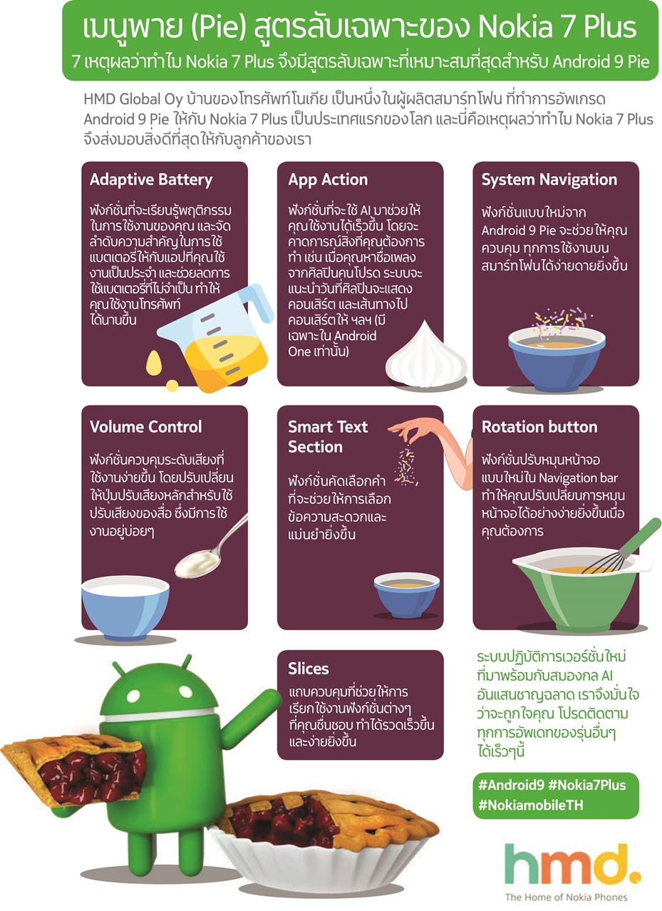 เมนูพาย (Pie) สูตรลับเฉพาะของ Nokia 7 Plus