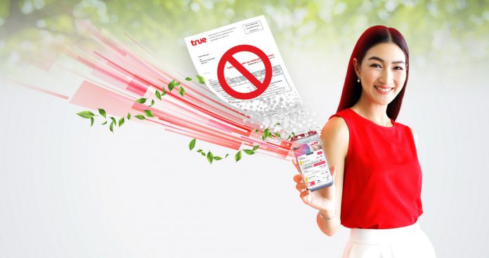 กรุงเทพฯ 15 ตุลาคม 2562 – กลุ่มทรู ชวนลูกค้าร่วมรักษ์โลกและใช้ชีวิตดิจิทัลเต็มรูปแบบ เปลี่ยนทุกบิลกระดาษมารับใบแจ้งชำระ/ใบกำกับภาษีค่าบริการผ่านทางระบบอิเล็กทรอนิกส์ True e-Bill ทาง SMS หรือ E-mail ตั้งแต่วันที่ 1 พฤศจิกายน 2562 เพื่อเป็นการร่วมลดปัญหาโลกร้อน ลดมลพิษ และร่วมพัฒนาสู่ความยั่งยืนด้านสิ่งแวดล้อมกับทรู ด้วยการงดรับบิลกระดาษ อีกทั้งยังใช้งานง่าย สะดวก รวดเร็ว และปลอดภัย โดยสามารถเปิดดูบิลค่าบริการผ่านแอปทรูไอดี และกดจ่ายบิลได้ทันที ด้วยทรูมันนี่ วอลเล็ท พร้อมรับทรูพอยท์ 2 เท่า ทุกๆ การชำระบิล สำหรับลูกค้าใหม่เมื่อดาวน์โหลด แอปทรูไอดี รับเพิ่มทันที เน็ต 5 GB 30 วัน (เฉพาะลูกค้าทรูมูฟเอช) และ 30 ทรูพอยท์