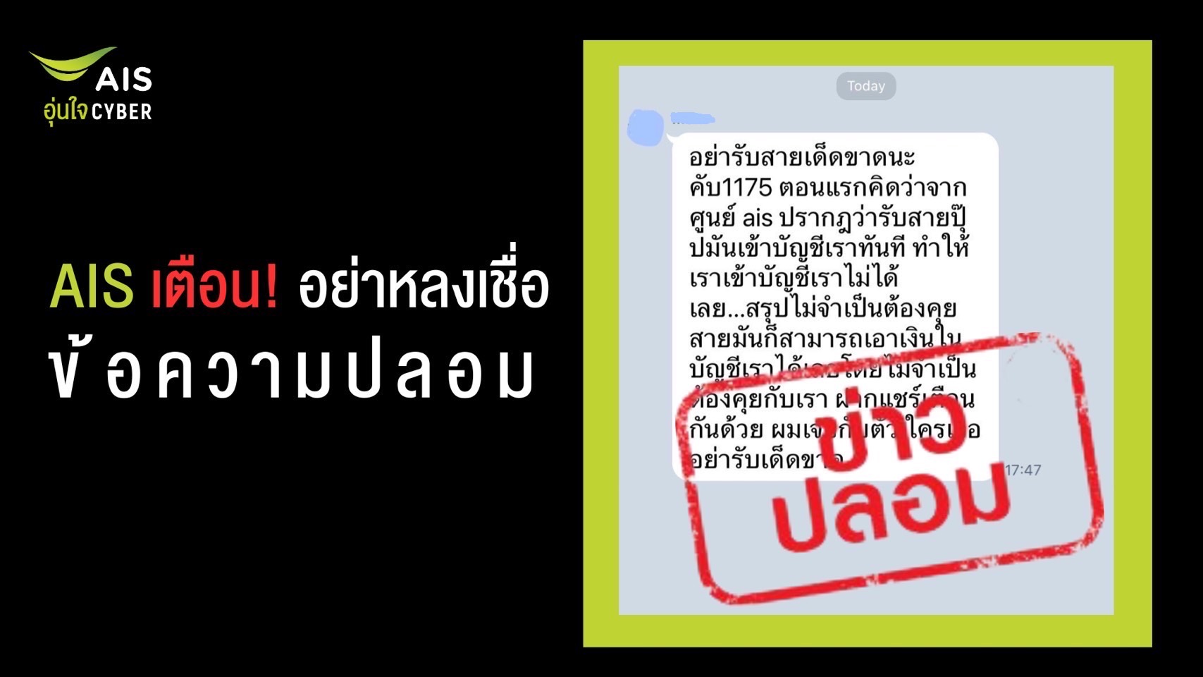 AIS เตือน อย่าหลงเชื่อข้อความปลอม !!! ยืนยันหมายเลข 1175 ไม่ใช่มิจฉาชีพดูดเงิน ขอหยุดส่งต่อสร้างความเข้าใจผิด