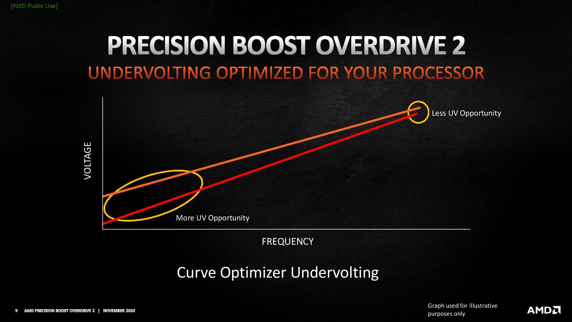 ตัวที่จะเข้ามาช่วยในจุดนี้ของ Precision Boost Overdrive 2 คือ Curve optimizer ที่จะพิจารณาความสามารถของซีพียูจากเซนเซอร์หลาย ๆ ตัว แล้วนำมาประกอบกันเพื่อปรับไฟให้เหมาะสมกับซีพียูตัวนั้น ซึ่งดีกว่าการกำหนดค่าแบบเดิม ๆ ที่จะเป็นการปรับค่าคงที่ ทำให้การรีดประสิทธิภาพอาจทำได้ไม่เต็มที่ แถมยังใช้พลังงานเยอะกว่าเดิม