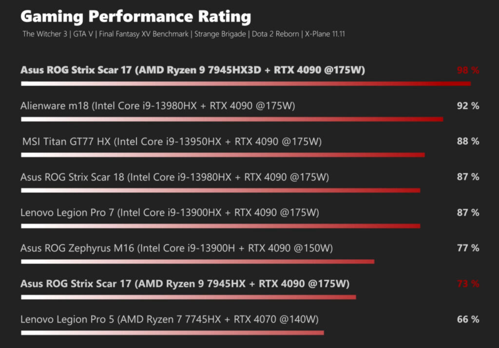 ผลการทดสอบด้านการเล่นเกมออกมาปรากฏว่า AMD Ryzen 9 7945HX3D เล่นเกมได้ดีกว่า Core i9-13980HX ราว 6% ในขณะที่เล่นเกมได้ดีกว่า AMD Ryzen 9 7945HX ถึง 25% เลยทีเดียว อย่างไรก็ตาม มันเป็นสัดส่วนเฉลี่ยของเฟรมเรตที่ทำได้ เดี๋ยวคงต้องมารอดูผลการทดสอบจริงอีกที