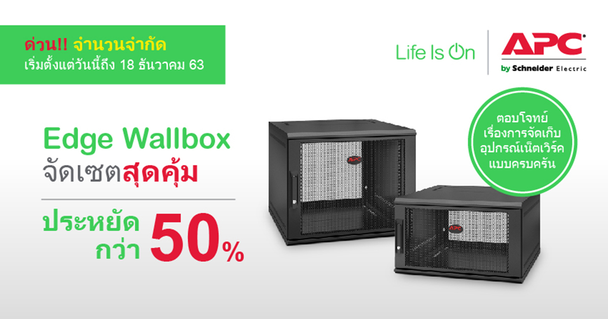 C NetShelter WX 6U หรือ 9U พร้อมกับเครื่องสำรองไฟ APC Easy UPS รุ่น BV 1000VA ตั้งแต่วันนี้ถึง 18 ธันวาคม 2563 รับโปรโมชั่นพิเศษที่จะช่วยประหยัดงบประมาณได้กว่า 50%