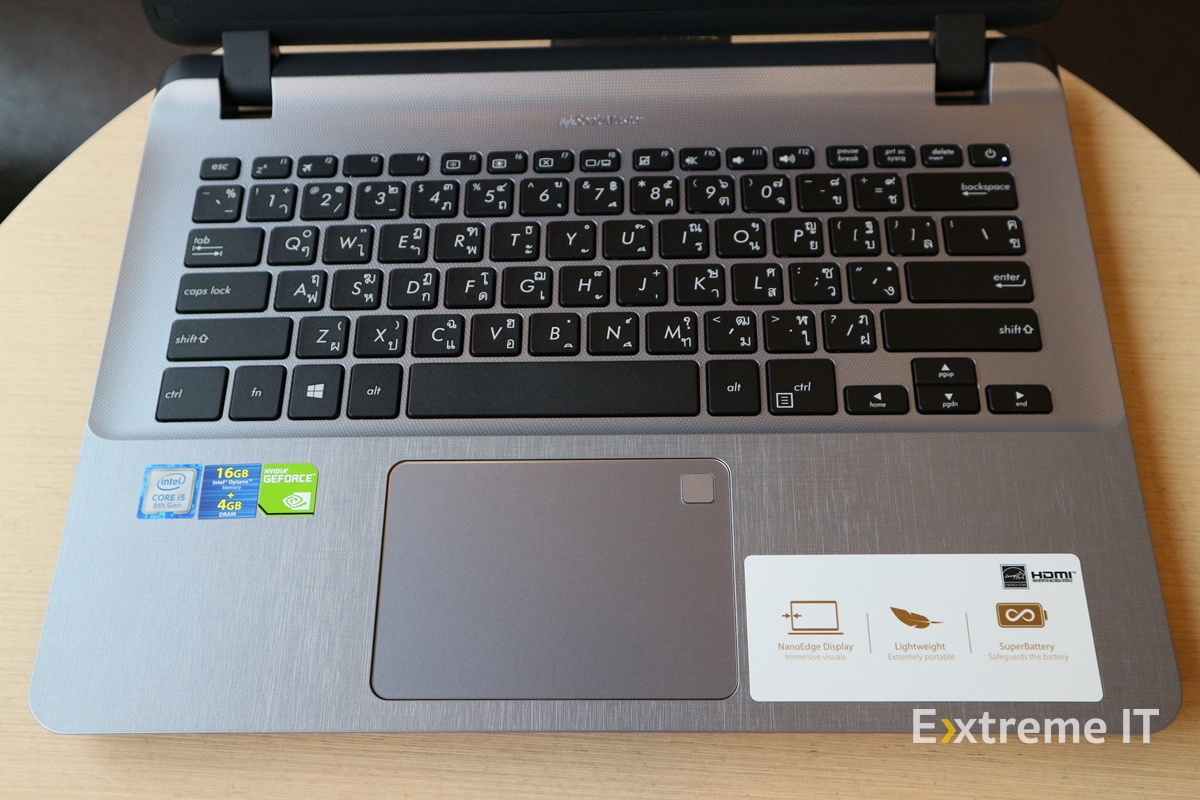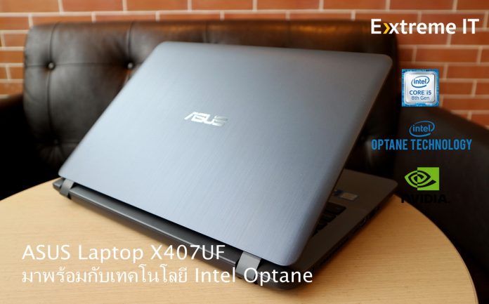 ASUS Laptop X407UF ที่พึ่งเปิดตัวไปเมื่อเดือนที่แล้วที่มาพร้อมกับเทคโนโลยี Intel® Optane™ เพื่อเร่งประสิทธิภาพของฮาร์ดดิสก์ให้ทำงานได้รวดเร็ว จะมีให้เลือกตั้งแต่รุ่น i3-7020U Intel Optane ราคา 15,990 บาท และตัวที่ผมรีวิวนี้คือรุ่น i5-8250U Intel Optane ราคา 18,990 บาท มาพร้อมกับกราฟิก NVIDIA® GeForce® MX130
