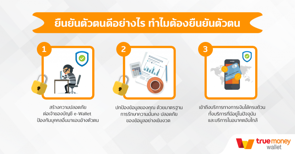 อย่างไรก็ตาม สิ่งหนึ่งที่มักจะเป็นคำถามสำคัญของผู้ใช้ e-Wallet ในยุคปัจจุบัน คือ “ทำไมเราต้องยืนยันตัวตน?” เนื่องจากขั้นตอนการยืนยันตัวตนนั้น โดยขั้นต้น ระบบจะร้องขอให้ผู้ใช้ต้องกรอกเลขบัตรประชาชน และเลขหลังบัตร ซึ่งทำให้ผู้ใช้ส่วนใหญ่รู้สึกไม่สบายใจเมื่อต้องให้ข้อมูลส่วนตัว วันนี้ทรูมันนี่ขอไขข้อข้องใจ ถึงเหตุผลว่าทำไมการยืนยันตัวตนถึงมีความสำคัญ และผู้ใช้ควรทำ เพื่อประโยชน์แก่ตัวผู้ใช้เองรวมถึงความปลอดภัยในเรื่องเงินๆ ทองๆ