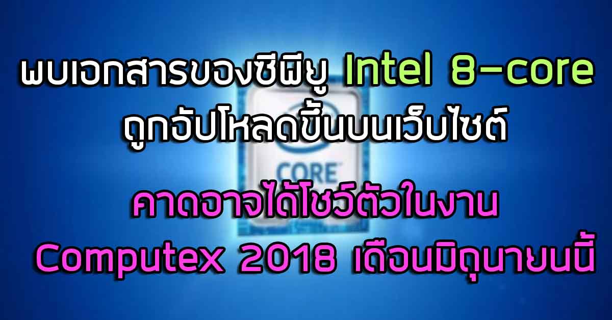 หลังจากที่เมื่อวานผมได้ปล่อยรูปผลการทดสอบ CPU-Z ของ Ryzen 7 2700X ไปแล้ว สาวก Intel หลายๆ คน คงรอการมาถึงของซีพียู 8-Core กันแล้วล่ะ ซึ่งวันนี้ก็มีข้อมูล Technical Documentation จากเว็บไซต์ของ Intel ซึ่งกล่าวถึงซีพียูตัวใหม่ด้วยครับ