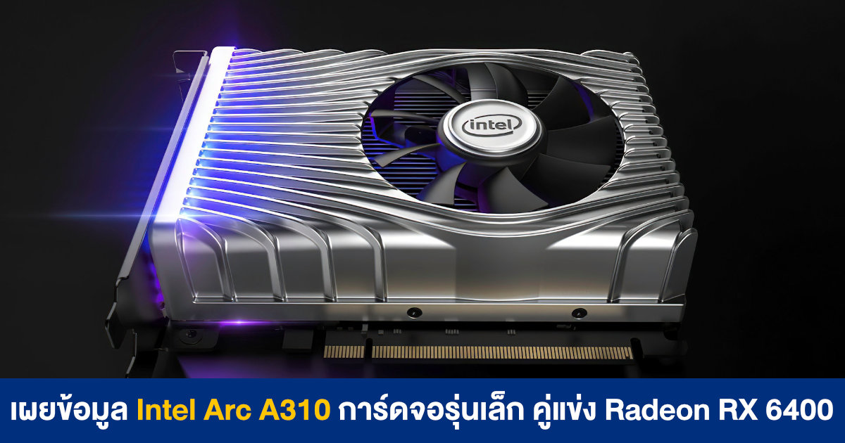 หลังจากที่เมื่อเช้ามีข่าว AMD เปิดตัวการ์ดจอรุ่นเล็กอย่าง Radeon RX 6400 ไปในราคา 159 ดอลลาร์ ทางฝั่งค่ายฟ้าก็ไม่รอช้ารีบมีข่าวหลุดออกมาด้วยเช่นกัน โดยเป็นการ์ดจอ Intel Arc A310 ที่จะมาตีตลาดการ์ดจอรุ่นเล็กเช่นเดียวกันครับ