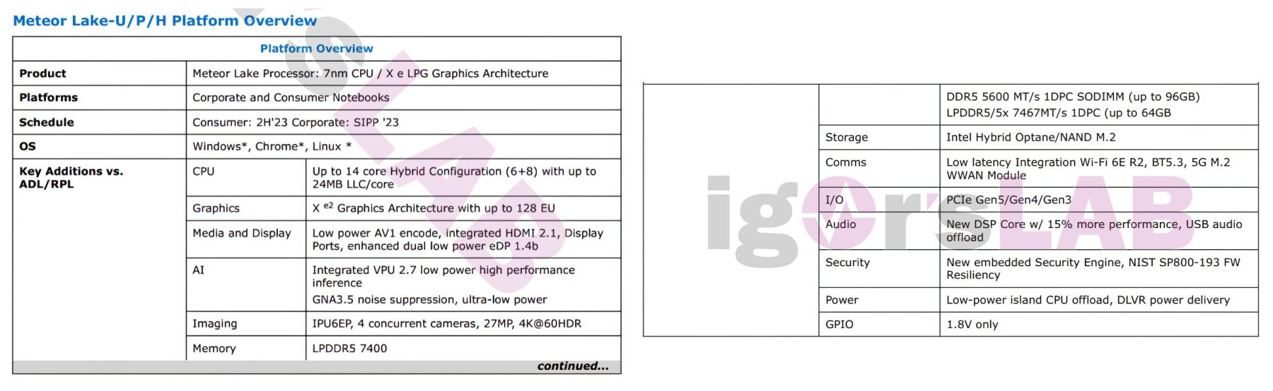 จากข้อมูลข้างต้น Meteor Lake-H และ Meteor Lake-P จะมีแกนประมวลผลสูงสุด 14 cores (6+8) ส่วน Meteor Lake-U จะมีแกนประมวลผลสูงสุด 12 cores รองรับแรม DDR5-5600 ความจุสูงสุด 96GB หรือ LPDDR5/LPDDR5X-7467 ความจุสูงสุด 64GB ที่สำคัญคือ H-Series จะรองรับ PcIe Gen 5 ด้วย
