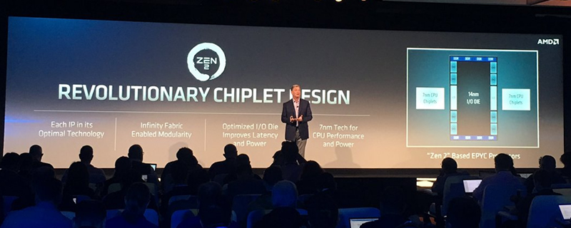 เนื่องด้วยสถาปัตยกรรม Zen 2 ของ AMD EPYC ที่กำลังจะเปิดตัวในเร็วๆ นี้ ได้มีการเลือกใช้โครงสร้าง Chiplet ที่ผสมผสานชิป 14nm และ 7nm เข้าด้วยกัน มอบประสิทธิภาพในการทำงานที่ดีขึ้น ในขณะที่ยังประหยัดไฟ และมีความคุ้มค่าทางด้านราคา ทำให้คู่แข่งอย่าง Intel เริ่มเสียลูกค้าไปเรื่อยๆ