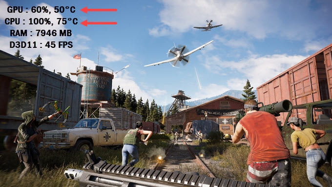 ในกรณีที่เกมนั้นใช้ซีพียูเป็นหลัก โดยเฉพาะเกมที่เน้นยูนิตเยอะๆ หรือเกมที่เล่นผ่านอีมูเลเตอร์ต่างๆ (NOX, Bluestack) ทำให้การ์ดจอถูกใช้งานน้อยลงได้นั่นเอง
