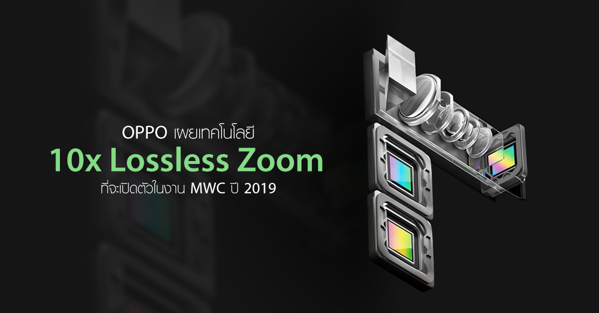 16 มากราคม 2019, เมืองปักกิ่ง, สาธารณรัฐประชาชนจีน – OPPO จัดการประชุมการสื่อสารทางเทคโนโลยีในอนาคตปี 2019 ซึ่งเผยถึงเทคโนโลยี 10x lossless zoom ที่กำลีงจะมาถึง ได้แถลงในการประชุมว่า เทคโนโลยี 10x lossless zoom นั้นเป็นไปตามมาตรฐานการค้าและพร้อมสำหรับการผลิตจำนวนมาก OPPO จะเปิดเผยถึงการพัฒนาเทคโนโลยีอันยิ่งใหญ่นี้ที่งาน MWC ปี 2019 ที่บาร์เซโลนา