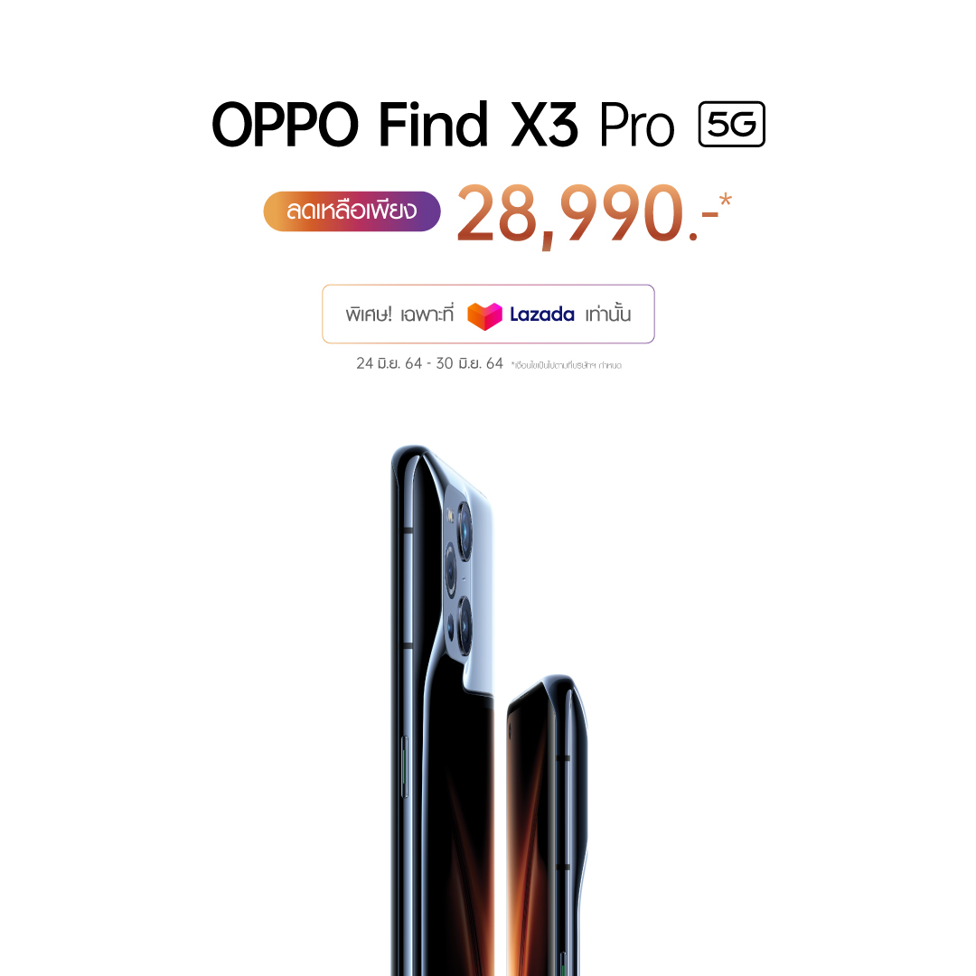 พิเศษ! ลดเหลือเพียง 28,990 บาท เมื่อซื้อผ่าน OPPO Official Store บน Lazada เท่านั้น ตั้งแต่วันนี้ – 30 มิถุนายน 2564