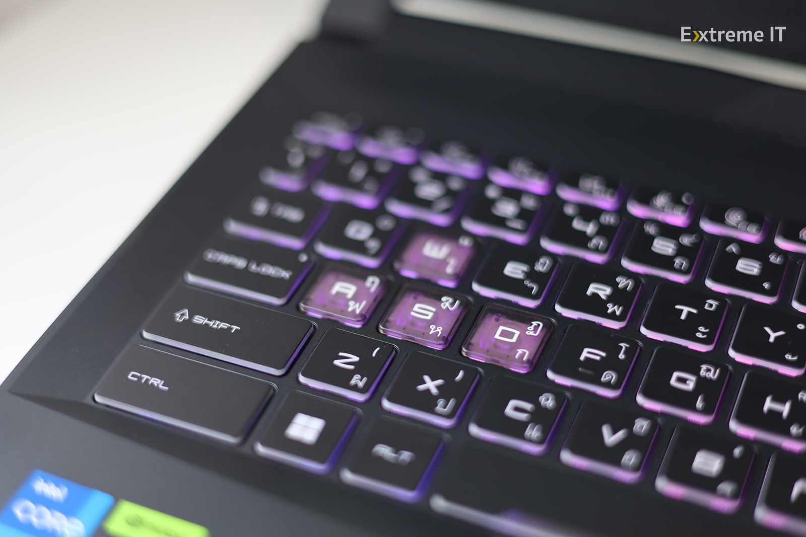 MSI Pulse 15 B13V มาพร้อมกับคีย์บอร์ด Full-Size 99 Key ที่มากับแผงนัมแพดมาด้วยพร้อมไฟ RGB แบบ 4 โซน ตรงส่วนปุ่ม WASD จะใช้เป็นปุ่มแบบโปร่งแสงมองเห็นชัดเจน ส่วนปุ่ม Function Key ยังมีมาให้ใช้งานครบเช่นเดิมครับ