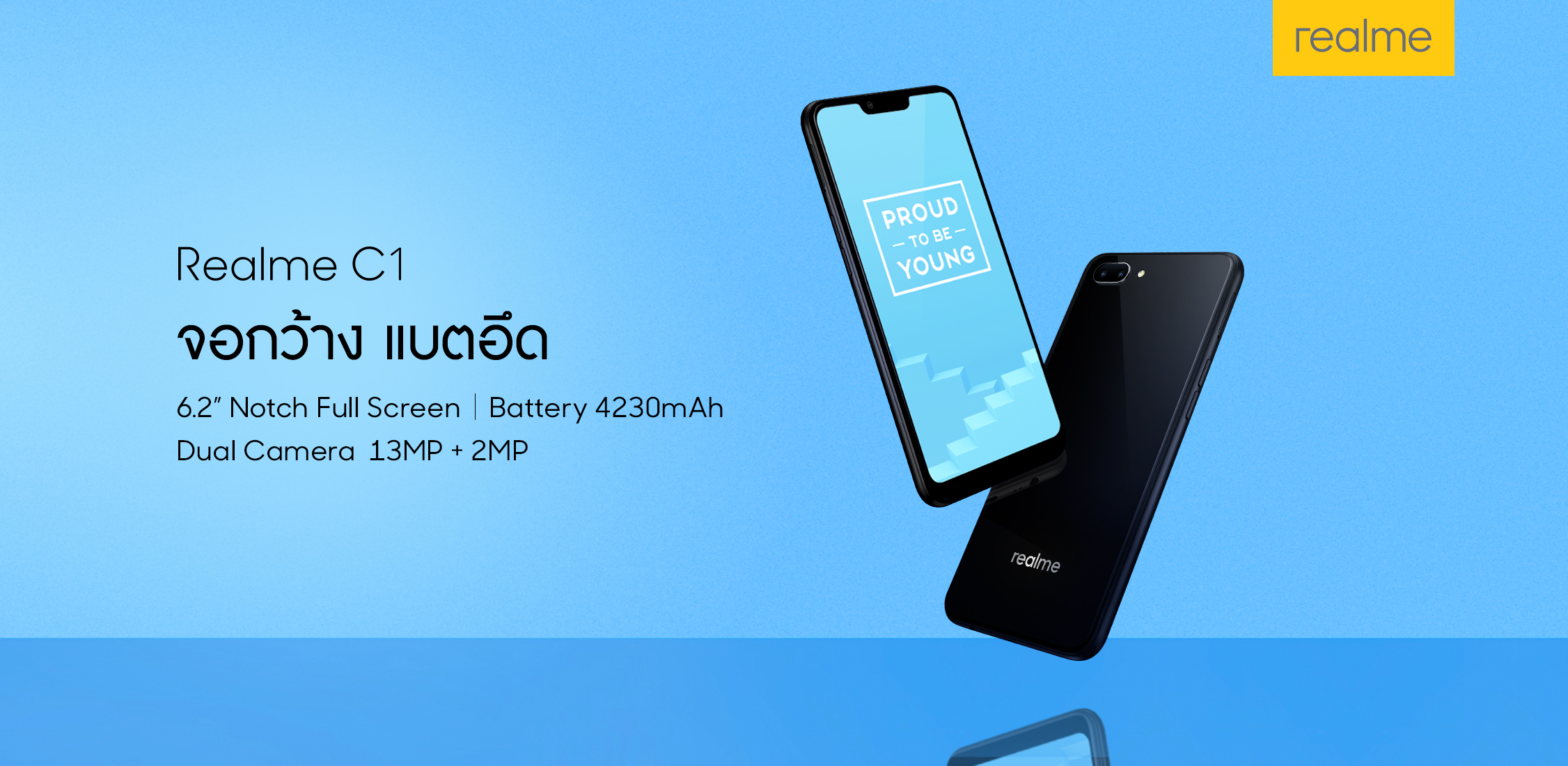 Realme (เรียลมี) แบรนด์สมาร์ทโฟนน้องใหม่ไฟแรง ประกาศแถลงข่าวงานเปิดตัว แบรนด์ Realme อย่างเป็นทางการครั้งแรกในประเทศไทย โดยเปิดตัวสมาร์ทโฟน Realme C1 (เรียลมี ซีวัน) รุ่นใหม่ล่าสุด ภายใต้สโลแกน Proud To Be Young ซึ่งถือเป็นสมาร์ทโฟนน้องเล็กสเปกคุ้ม รุ่นที่สองที่เข้ามาวางจำหน่ายในไทย