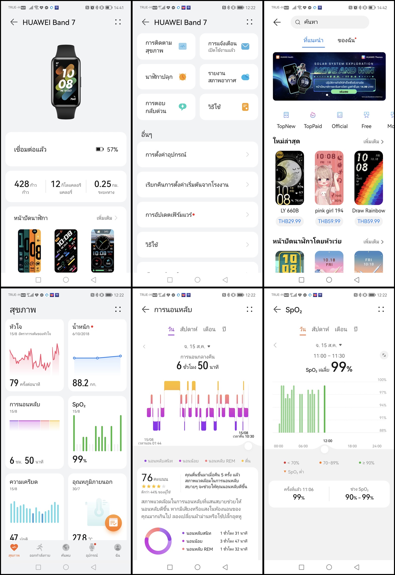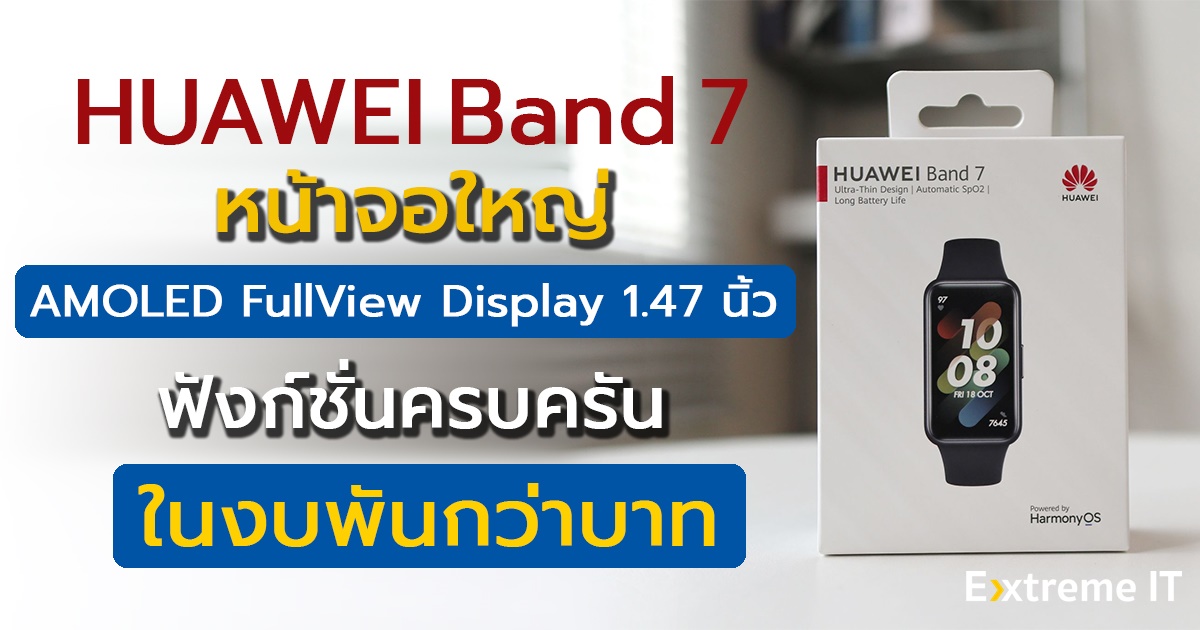 HUAWEI Band 7 สมาร์ทแบนด์อัจฉริยะรุ่นใหม่ล่าสุดมาพร้อมกับหน้าจอขนาดใหญ่ AMOLED FullView Display 1.47″ แสดงผลได้คมชัดเต็มตา รองรับการแสดงผลแบบ Always on display ตัวเครื่องสามารถใช้งานได้ยาวนานถึง 14 วันต่อการชาร์จหนึ่งรอบ สำหรับด้านสุขภาพและการออกกำลังกาย โหมดออกกำลังกาย 96 โหมด และตรวจวัดร่างกายทั้ง ค่าความอิ่มตัวของออกซิเจนในเลือด (SpO2) / วัดอัตราการเต้นของหัวใจระหว่างการออกกำลังกาย / ติดตามการนอนหลับพักผ่อนด้วยเทคโนโลยี HUAWEI TruSleep ทั้งหมดนี้กับค่าตัวเบาๆเพียง 1,899 บาท