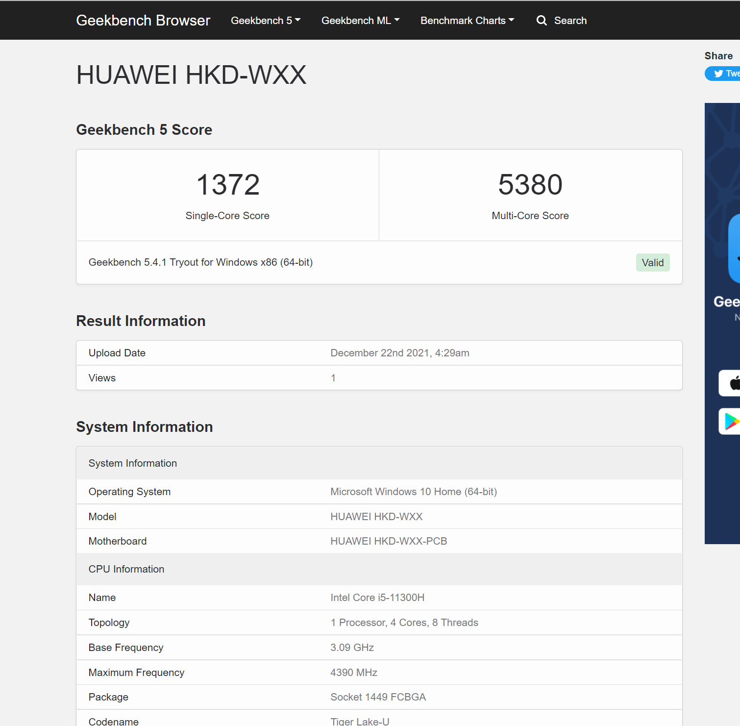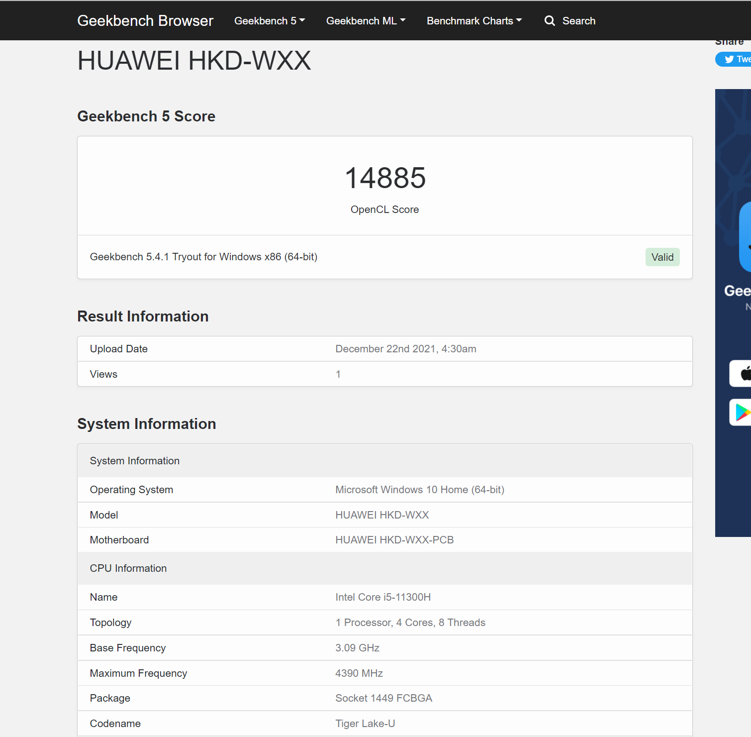 SPEC HUAWEI MateBook 14s (i5-11300H)