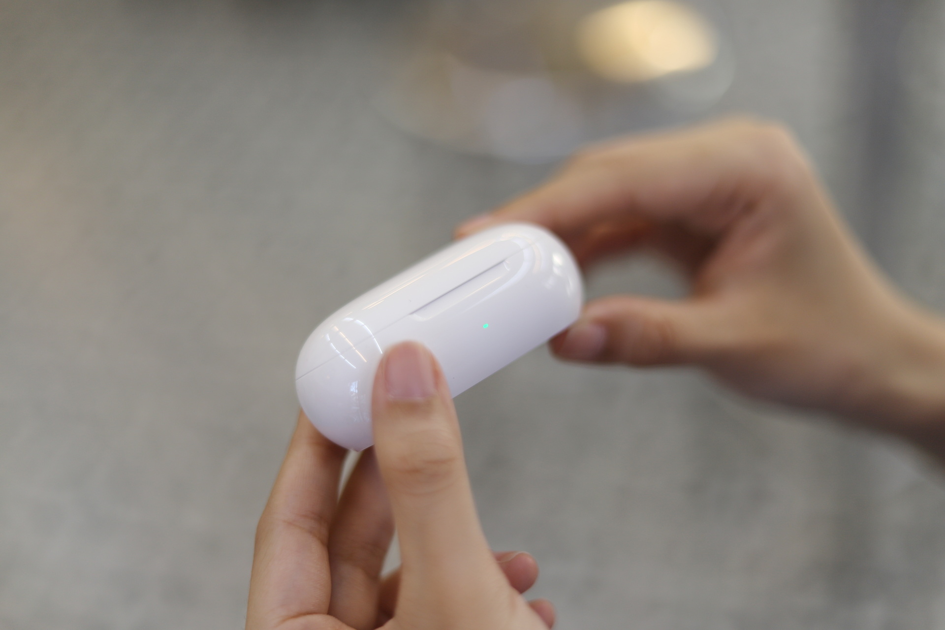 เคสหรือที่ชาร์จมาทรงกลมรูปไข่ ขนาดเล็กกระทัดรัดน้ำหนักเบาพกง่าย สำหรับตอนนี้วางจำหน่ายแค่สีขาว Pearl White สีเดียวนะครับ ส่วนสีดำรอลุ้นกันอีกทีว่าจะตามมาไหม