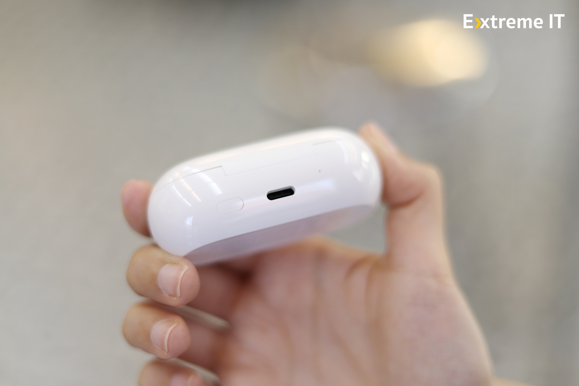 ด้านหลังจะมีพอร์ต USB-C สำหรับชาร์จไฟและปุ่มสำหรับการเชื่อมต่อ สำหรับตัวเคสมาตราฐานกันกันฝุ่นกันละอองน้ำมาตราฐาน IPX4