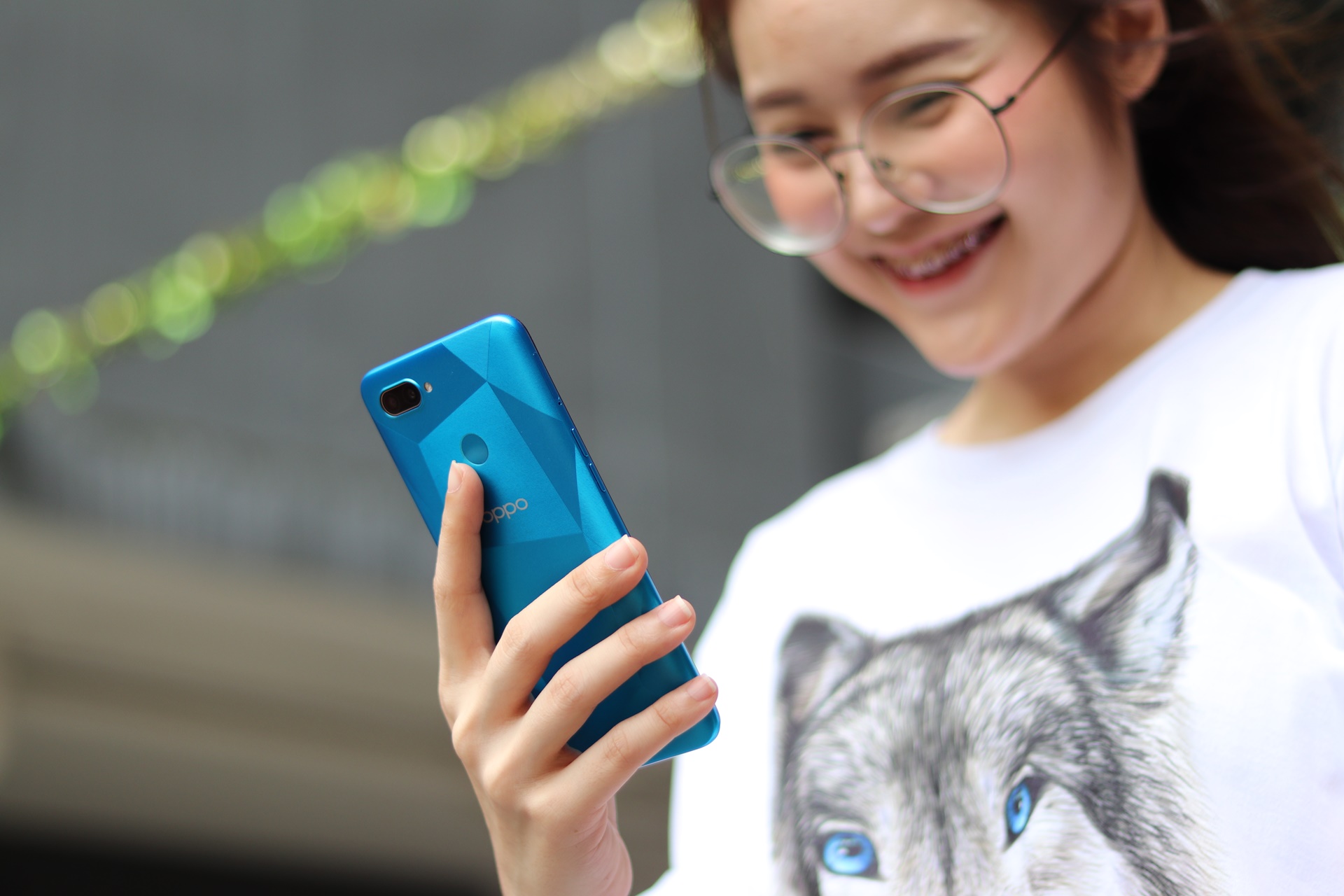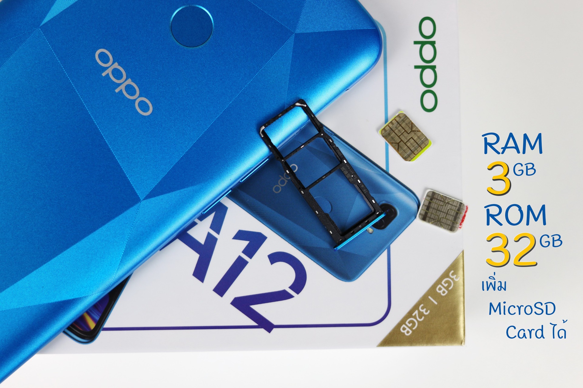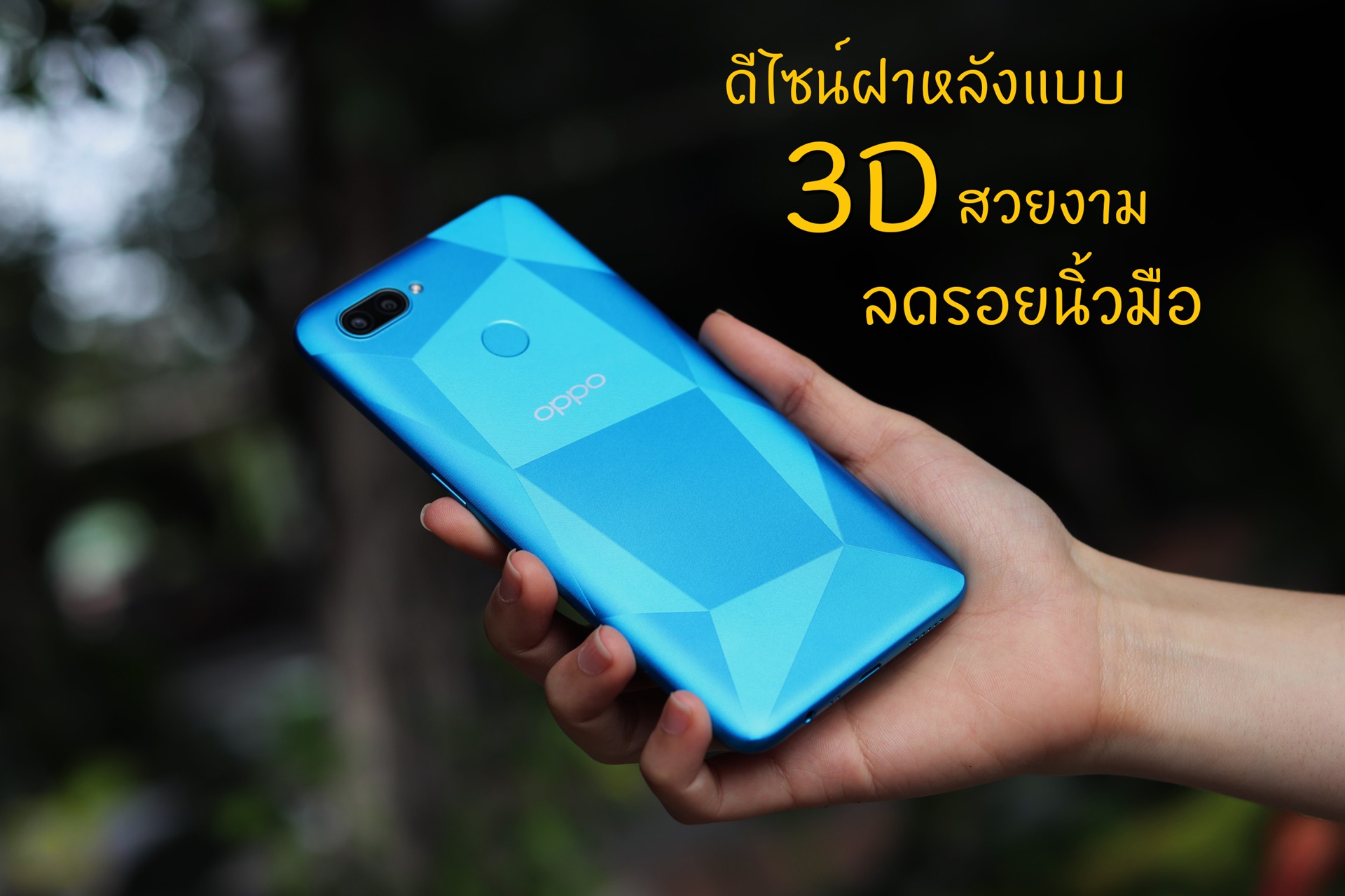 จุดเด่นแรกของ OPPO A12 คือลวดลายฝาหลังแบบ 3D Diamond Blaze ที่โดดเด่นเป็นเอกลักษณ์ มุมมองเหมือนเหลี่ยมเพชรดูสวยงามและป้องกันรอยนิ้วมือติดตัวเครื่องได้ดีมากๆ
