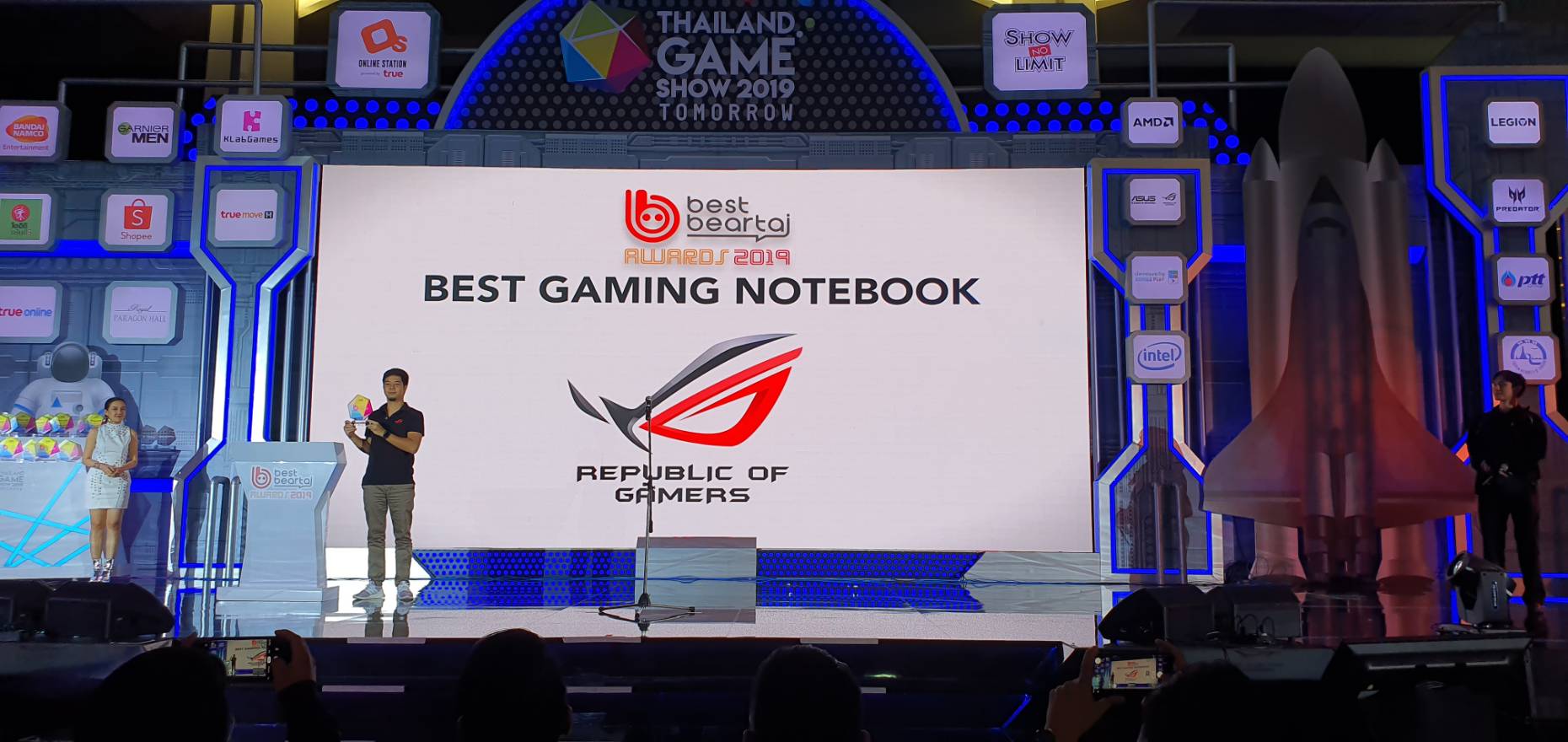 กรุงเทพฯ, 28 ตุลาคม 2562 – ROG (Republic of Gamers) เกมมิ่งโน้ตบุ๊กสุดพรีเมี่ยมจากเอซุสตอกย้ำ แบรนด์อันดับหนึ่งสำหรับเกมเมอร์สชาวไทย ล่าสุดคว้าสามรางวัลใหญ่จากการประกาศรางวัลโดยทีมงาน Beartai ณ งาน Thailand Game Show 2019 นำโดย ROG Zephyrus S ที่คว้ารางวัล Best Gaming Notebook จากนวัตกรรมและเทคโนโลยีมาตรฐานใหม่สำหรับเกมมิ่งโน้ตบุ๊ก ด้วยจอภาพขอบบางพิเศษขนาด 17 นิ้วบนตัวเครื่องที่บางเพียง 18.7 มิลลิเมตร มาพร้อมกับ GeForce RTX™ 2080 แบบ Max-Q และซีพียู 9th Gen Intel® Core™ i7 จอภาพอัตรารีเฟรช 144 เฮิร์ตซ์ และค่าสีมาตรฐาน PANTONE® พร้อมด้วยระบบสวิตช์ปรับเปลี่ยนการใช้งานในทั้งระบบ G-SYNC™ เพื่อการเล่นเกมที่สมจริงสะใจ และระบบ Optimus เพื่ออายุการใช้งานแบตเตอรีที่นานขึ้น