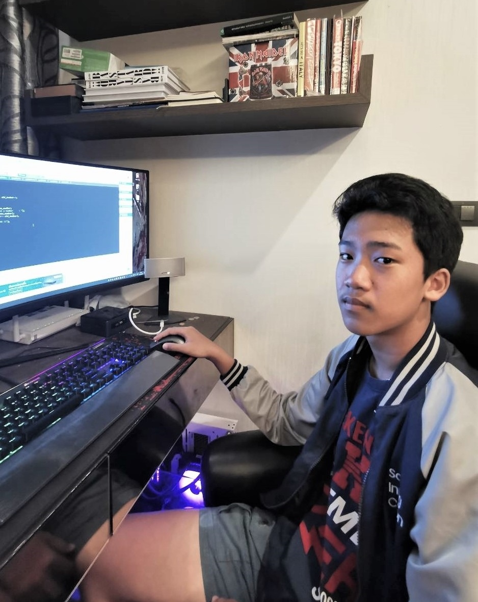 ด.ช.กิตติศักดิ์ ซื่อดี นักเรียนชั้นมัธยมศึกษาปีที่ 2 โรงเรียนชลประทานวิทยา จากจังหวัดนนทบุรี เผยถึงประสบการณ์การเรียนในครั้งนี้ว่า “สนใจเรียนด้านโค้ดดิ้ง เพราะการอบรมครั้งนี้จะได้ทั้งความรู้และประสบการณ์ใหม่ๆ อย่างการเรียนออนไลน์และการเขียนโปรแกรมที่ไม่เคยเรียนมาก่อน โดยส่วนตัวผมชอบเรียนภาษาซีเพราะมีความยากและท้าทาย ซึ่งในคอร์สนี้ถ้าไม่เข้าใจก็สามารถสอบถามอาจารย์ระหว่างเรียนได้เลย ผมว่าการเรียนในโรงเรียนและออนไลน์แตกต่างกันมาก เพราะในห้องเรียนบางทีเพื่อนในห้องทำให้ไม่มีสมาธิ หรือเมื่อมีข้อสงสัยอยากถามอาจารย์แต่ก็กลัวอาจารย์ดุ จึงไม่กล้าถาม แต่การเรียนออนไลน์มีหลายคนในห้องแต่ไม่มีคนคุยกันระหว่างเรียน และไม่ต้องเจอหน้าอาจารย์ทำให้กล้าถามกี่คำถามก็ได้ ต่อให้เรียนช้าก็เรียนทันเพื่อนเพราะสามารถดูคลิปการสอนย้อนหลังได้ นอกจากนี้ยังได้เพื่อนใหม่จากคอร์สนี้ที่ช่วยกันทำแบบฝึกหัดของอาจารย์ และถึงแม้ว่าในอนาคตผมอยากเป็นสถาปนิก แต่การเรียนโค้ดดิ้งก็เป็นสิ่งที่มีประโยชน์สำหรับอนาคต”