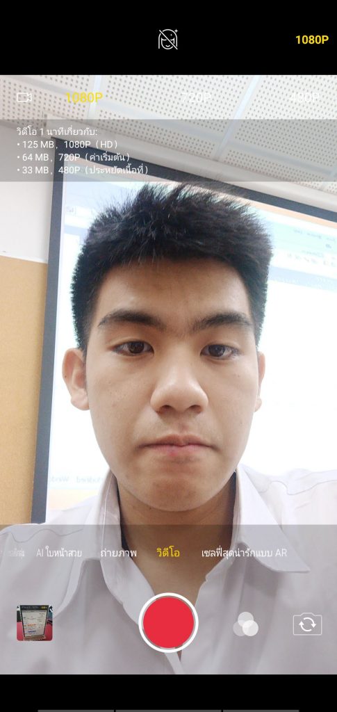 กล้องหน้าสามารถถ่ายวิดีโอได้ที่ความละเอียดสูงสุดคือ FullHD 1080P