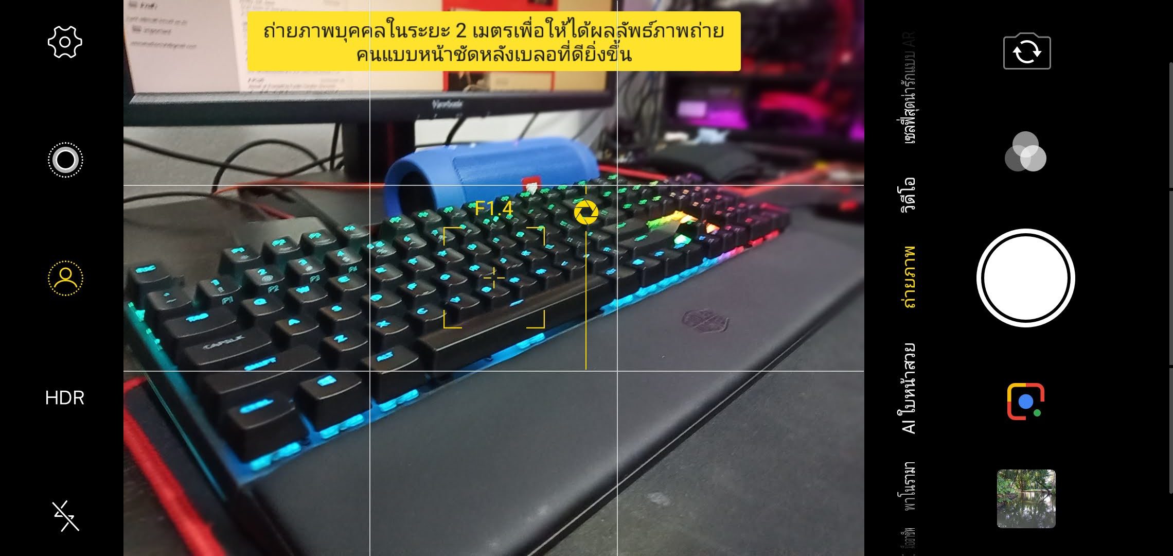 ภาพแรกจะเห็นได้ว่าเจ้า V11i นั้นรองรับ Mode Pro เราสามารถปรับตั้งค่าทั้ง ISO, EV, WB, Shutter Speed และ Focus ได้อย่างละเอียดอิสระเลย เหมาะกับสายถ่ายภาพกลางคืน ลาก Shutter Speed ยาว ๆ ได้สบาย ๆ สามารถลาก Shutter Speed ได้สูงสุดถึง 32 วิเลยเยอะโคตร มีการ Built In Google lens มาให้ใช้งานเลยสะดวกดีเหมือนกัน ช่วยเราได้บ้างบางครั้งเนื่องจากยังคงเป็นช่วงเริ่มต้นของ Google Lens ยังมีความฉลาดบ้างไม่เจอบ้างเป็นเรื่องปกติครับมีโหมด Live Photo มาให้ใช้งาน เมื่อเราเปิดโหมดนี้ไว้เวลาถ่ายถาพมาแล้วเราสามารถดูภาพเคลื่อนไหวก่อนหน้าที่เรากด Shutter ได้เป็นแบบเครลื่อนไหวตัวเครื่องจะทำการบัททึกภาพเคลื่อนไหวระยะสั้น ๆ ไว้ให้