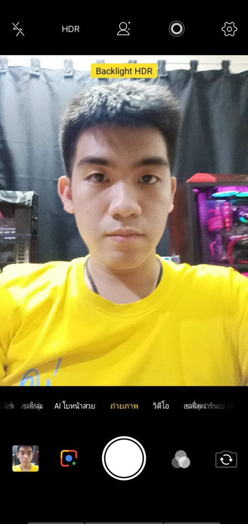 โหมดนี้เรียกได้ว่าเป็นจุดขายของเจ้า Vivo V11i เลยก็ว่าได้ Backlight HDR ทำให้เราสามารถถ่ายภาพแบบย้อนแสงหรือที่ ๆ มีสภาพแสงน้อย ๆ ได้สบาย ๆ เลย ภาพที่ได้ออกมาจะสว่างรายละเอียดดีกว่าตอนไม่เปิดมาก ๆ ถ้าถ่ายย้อนแสงก็จะได้ภาพที่หน้าเราไม่มืดและท้องฟ้ายังคงสีสวยงามไม่สว่างหายไปกับการเพิ่มแสงมีให้ใช้ทั้งกล้องหน้าและกล้องหลัง